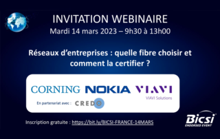 Cercle CREDO is a partner of the webinar "Which fiber to choose and how to certify it" organized by BICSI on March 14, 2023 from 9:30 a.m. to 1:00 p.m. Philippe Fouet, Technical Director of the Cercle CREDO will intervene at 9:45 am with a feedback on the Passive Optical [...]