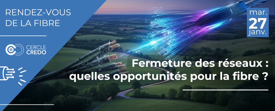 Notre premier Rendez-vous de la Fibre de 2026 aura lieu le mardi 27 janvier (9h à 12h30) au siège de la FFIE (places limitées) et à distance. La matinée comprendra deux débats : le premier sur les enjeux de la fermeture des réseaux cuivre et 2G/3G, le second sur l’importance de la fibre dans la fermeture des réseaux. Avec l'intervention de : Afutt, Arcep, CDRT, EKHO, Eutelsat, FFTélécoms, FNCCR et InfraNum et sous réserve d’un opérateur d’infrastructures. |