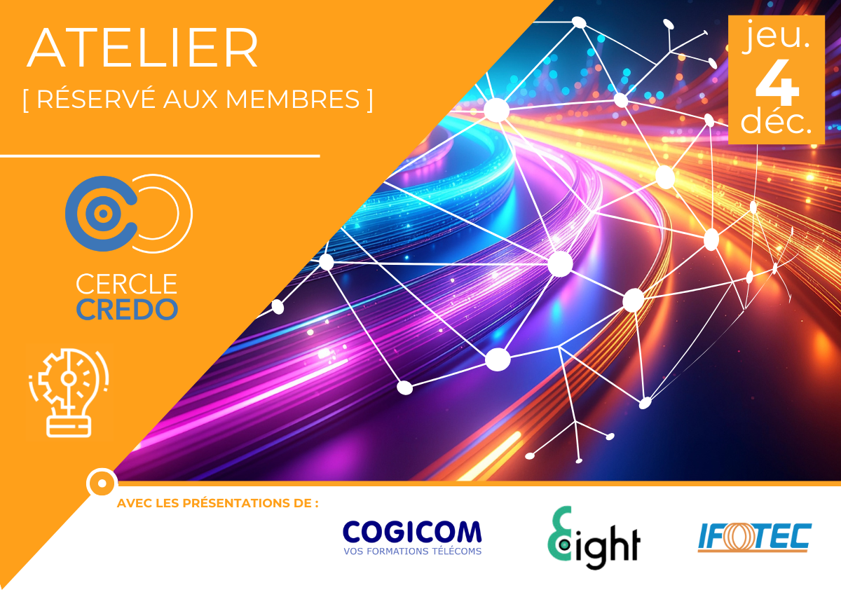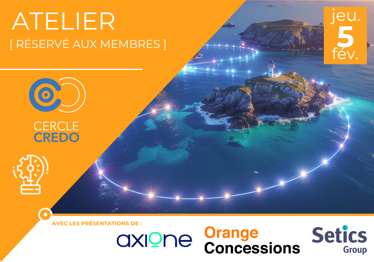 Les ateliers ont lieu le 1er jeudi de chaque mois (sauf exception) et le programme vous est communiqué quelques semaines avant. A l’affiche du prochain atelier du jeudi 5 février : nous assisterons, sur le thème du raccordement très haut débit des îles bretonnes, aux interventions de deux membres (Axione et Setics) ainsi que de Orange Concessions.